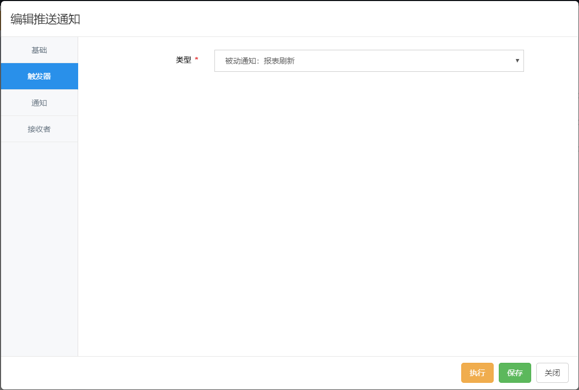 被动刷新即指当报表刷新时,便触发推送通知。报表刷新可参考 报表刷新策略